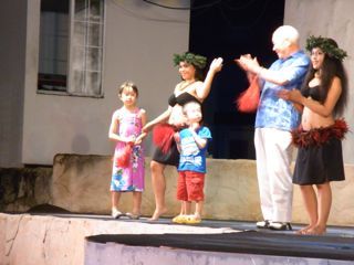 最終日はBBQ&ポリネシアンダンスショー。ダンス対決で息子も舞台に上がりましたが、